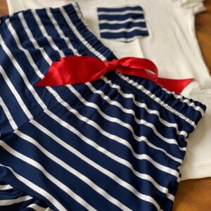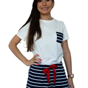 Short Doll em malha, com laço de cetim e bolso frontal na camiseta.