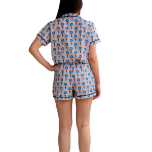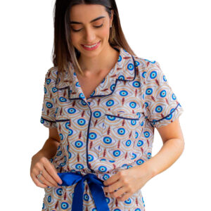 Conjunto short doll modelo americano em tactel com elastano, com botões frontais e detalhe em laço de cetim.